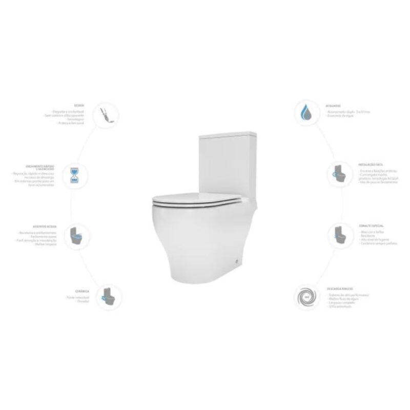 Kit Vaso Sanitário com Caixa Acoplada e Assento Soft Close Barroco Acqua Brasil Branco Brilhante