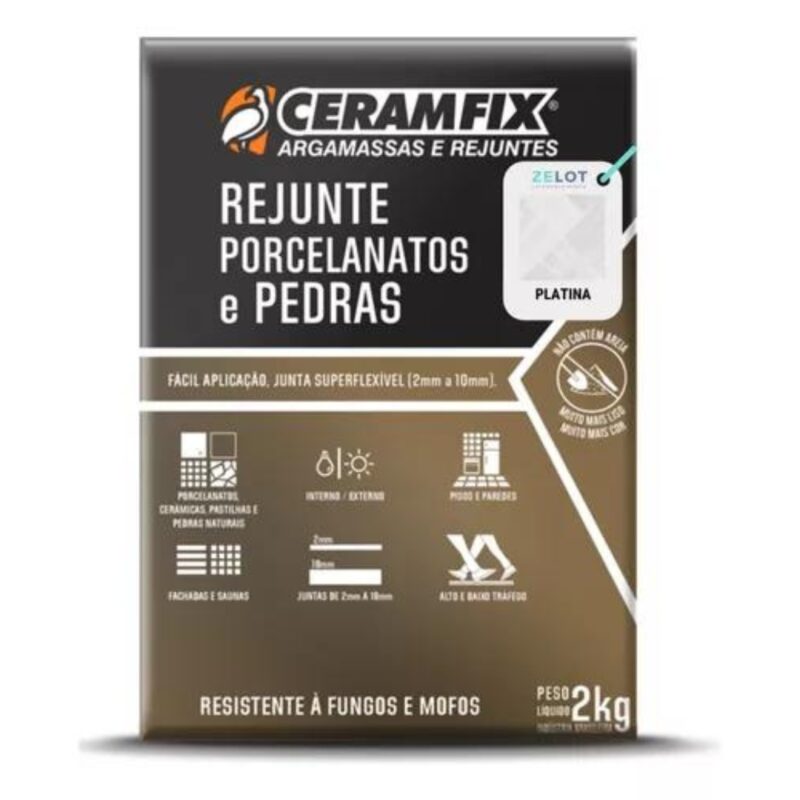 REJUNTE P/PORCELANATO E PEDRA 2 KGS – PLATINA CERAMFIX