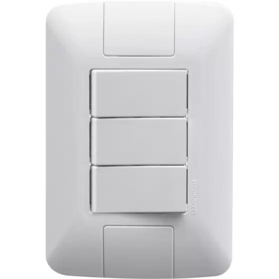 Conjunto 4×2 com 3 Interruptores Simples Tramontina Aria 6 A 250 V Branco